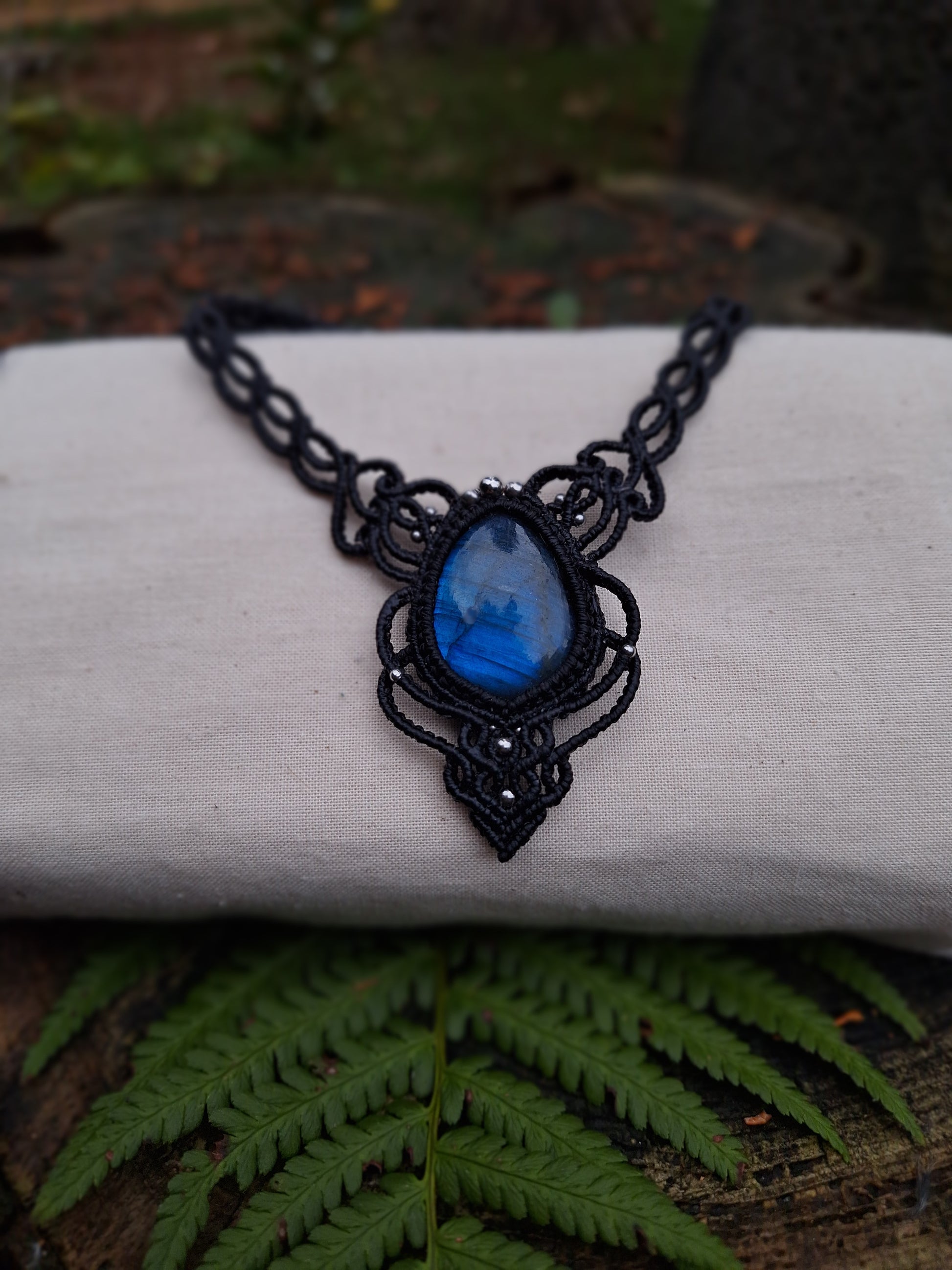 Blue Flame – Boho Macramé Choker Necklace with Labradorite