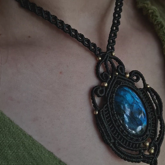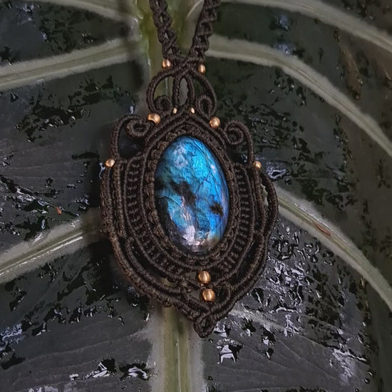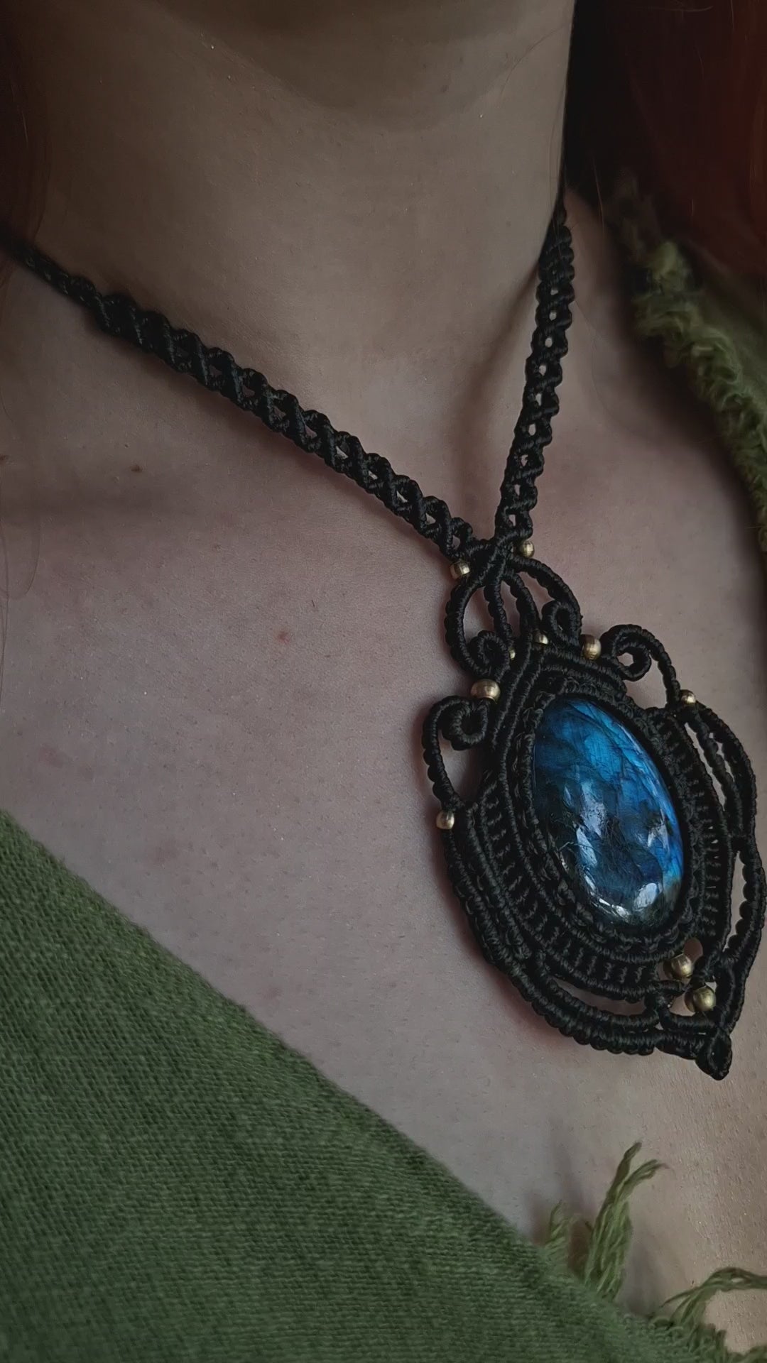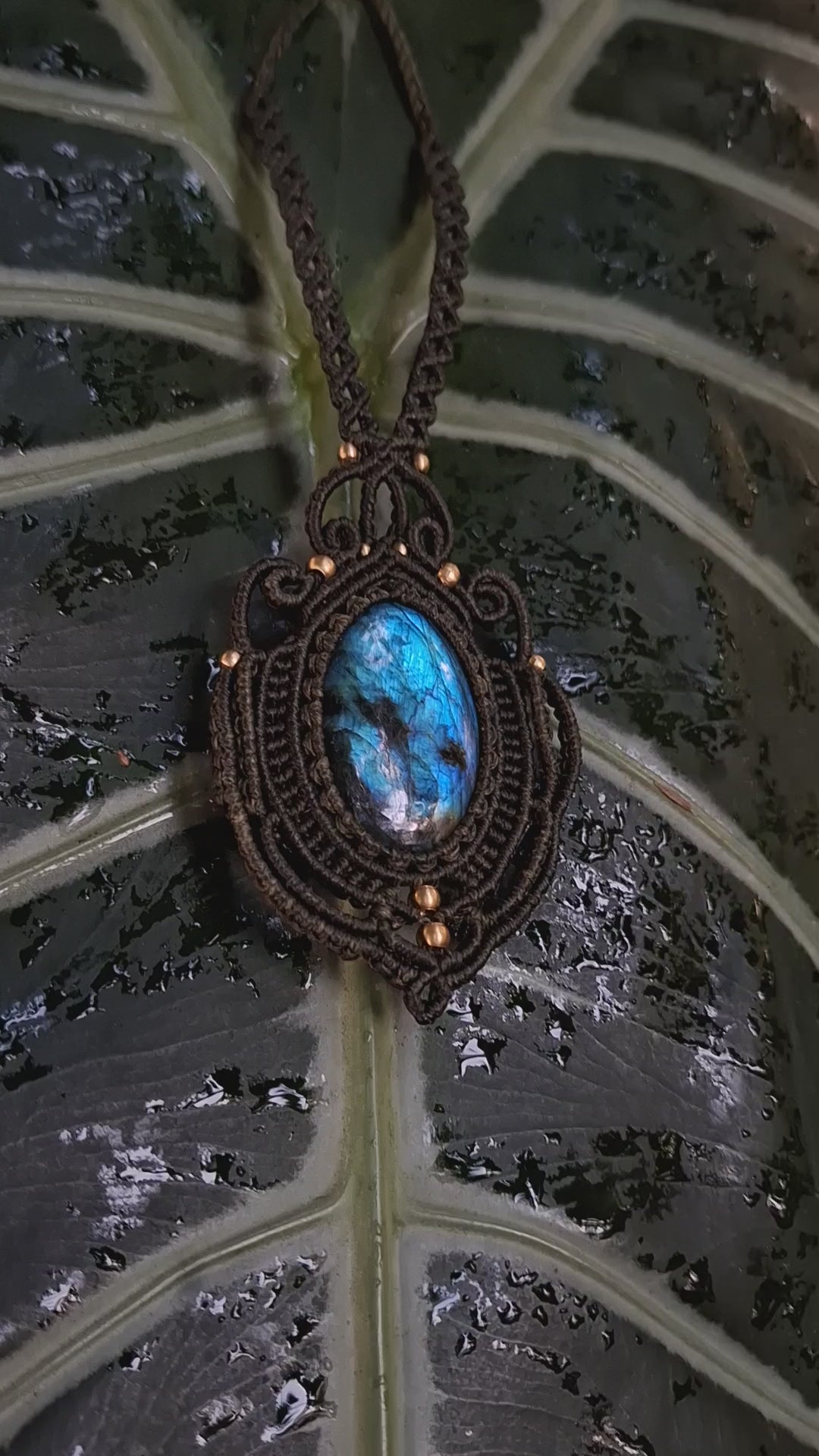 Diese wunderschöne Makramee Kette mit Labradorit ist ein handgefertigtes Schmuckstück voller Energie und Ausdruckskraft.
