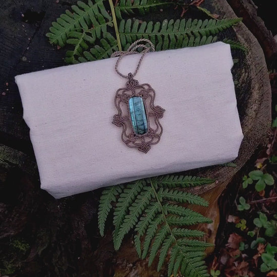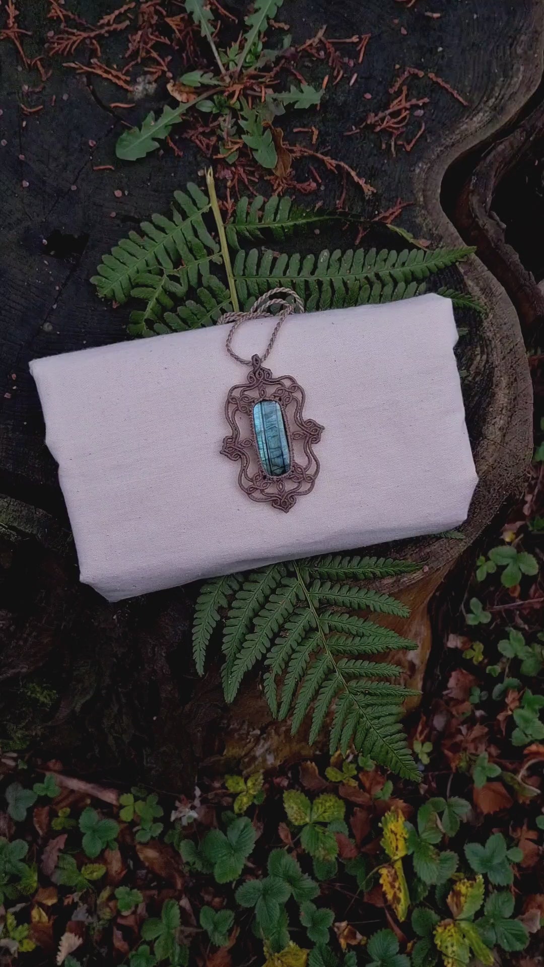 Step into the realm between worlds with Celestial Gate, a handmade macramé necklace featuring a glowing labradorite that shimmers like a portal to the stars. Its ethereal flashes of blue and silver evoke cosmic energy, intuition, and inner discovery.