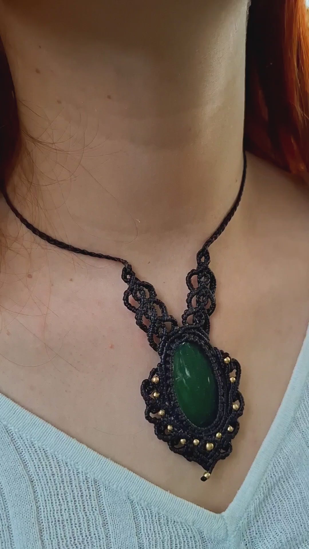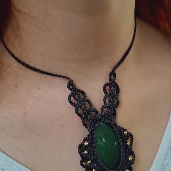 A handmade macramé necklace featuring a deep green aventurine stone that carries the gentle strength of the forest.