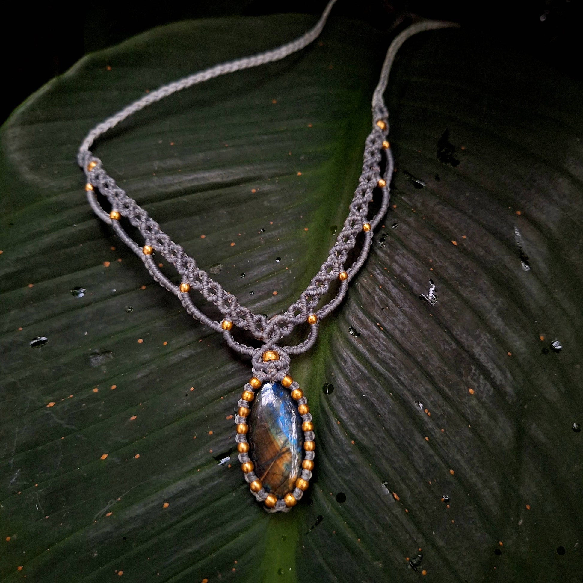 Ocean Flame – Macramé Necklace with Labradorite