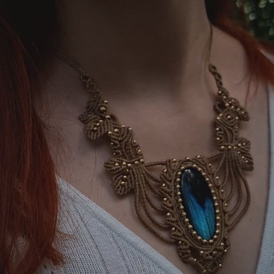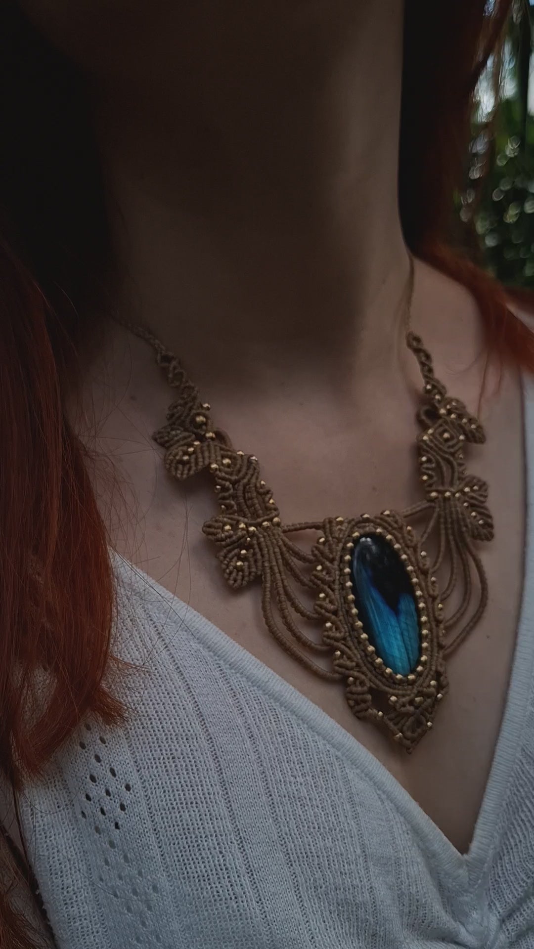 Diese wunderschöne Makramee Kette mit Labradorit ist ein handgefertigtes Schmuckstück voller Energie und Ausdruckskraft.
