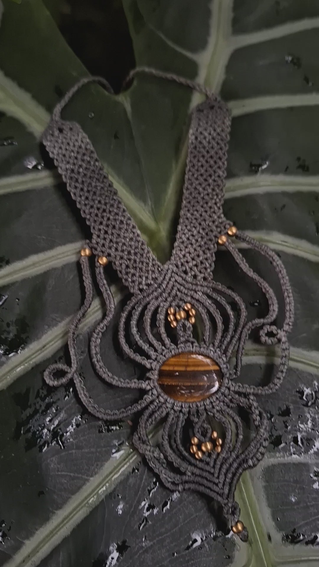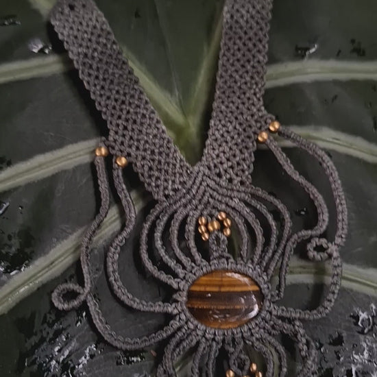 Diese ausdrucksvolle Makramee Kette mit Tigerauge ist ein handgefertigtes Einzelstück voller Kraft und Eleganz.