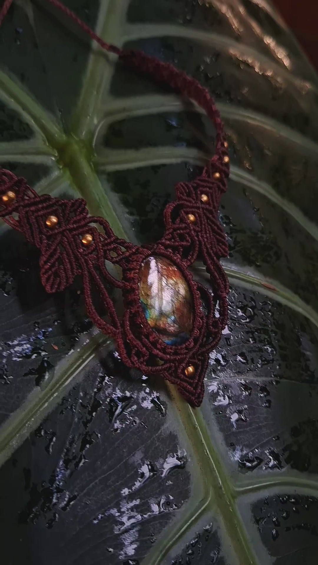 Diese wunderschöne Makramee Kette mit Labradorit ist ein handgefertigtes Schmuckstück voller Energie und Ausdruckskraft.