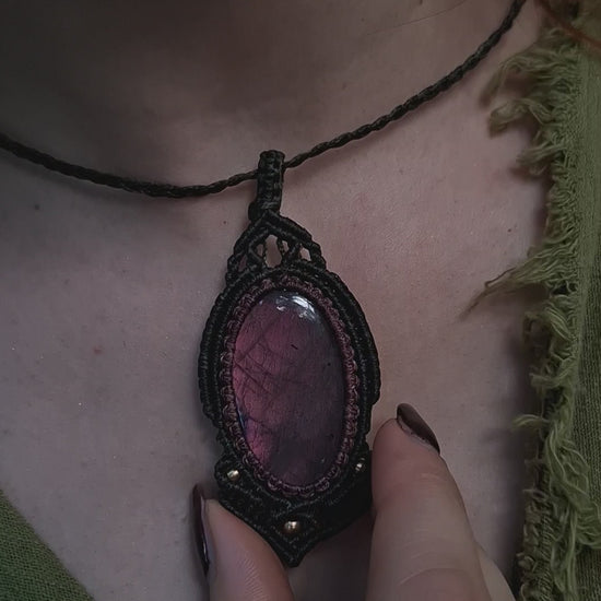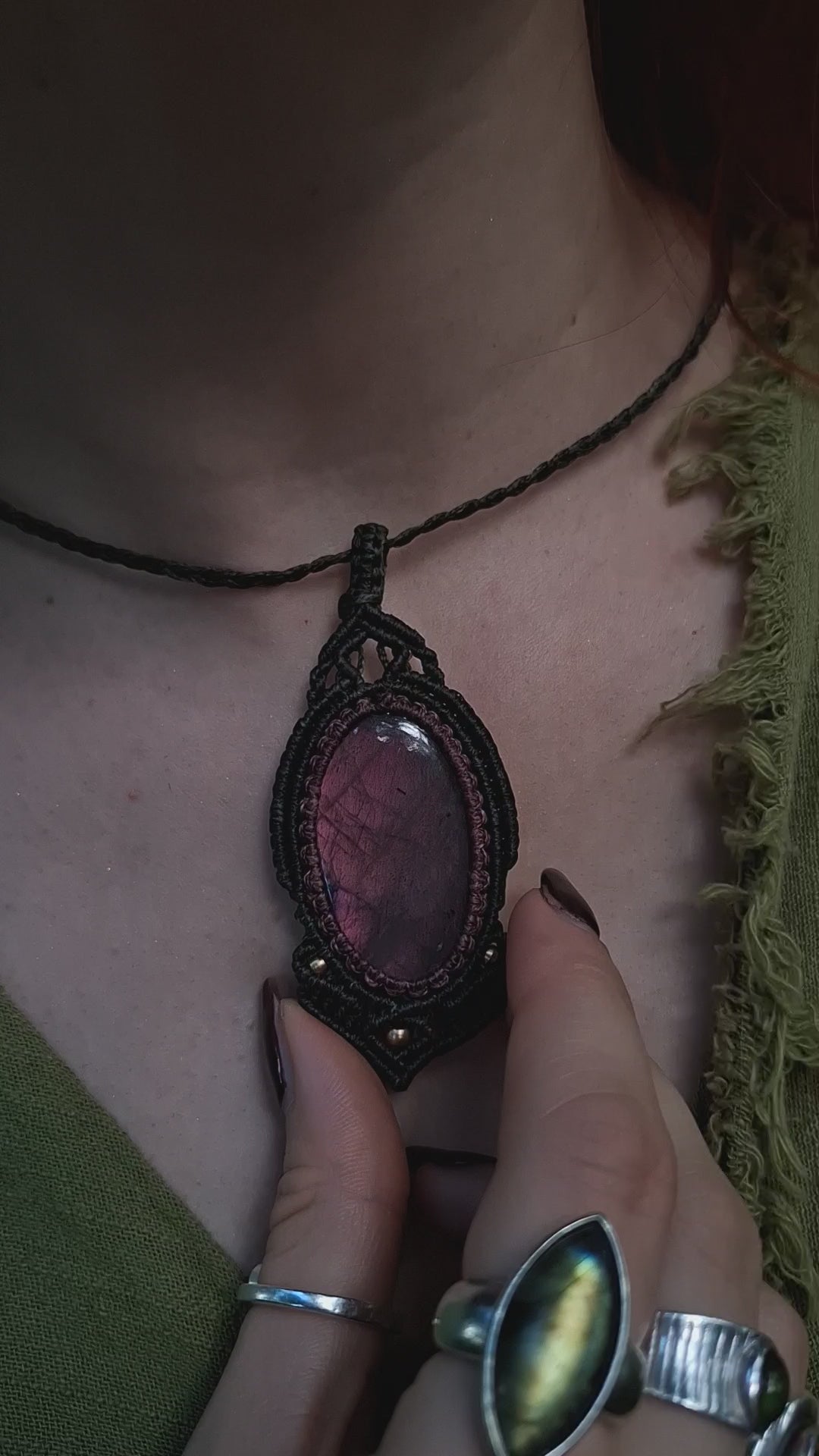 Diese wunderschöne Makramee Kette mit Labradorit ist ein handgefertigtes Schmuckstück voller Energie und Ausdruckskraft.