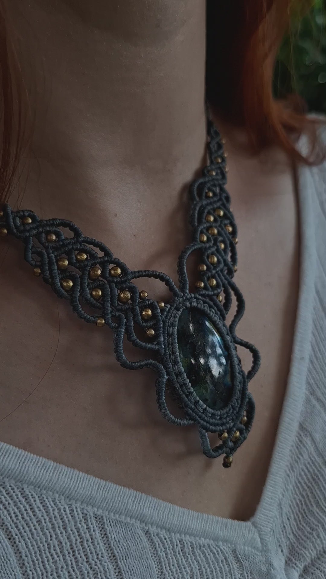 Diese wunderschöne Makramee Kette mit Labradorit ist ein handgefertigtes Schmuckstück voller Energie und Ausdruckskraft.