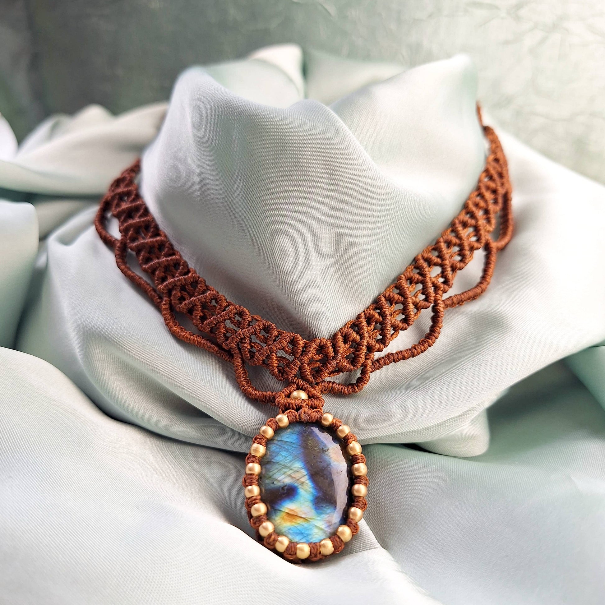 Makramee Kette mit Labradorit/ Boho Hippie Schmuck