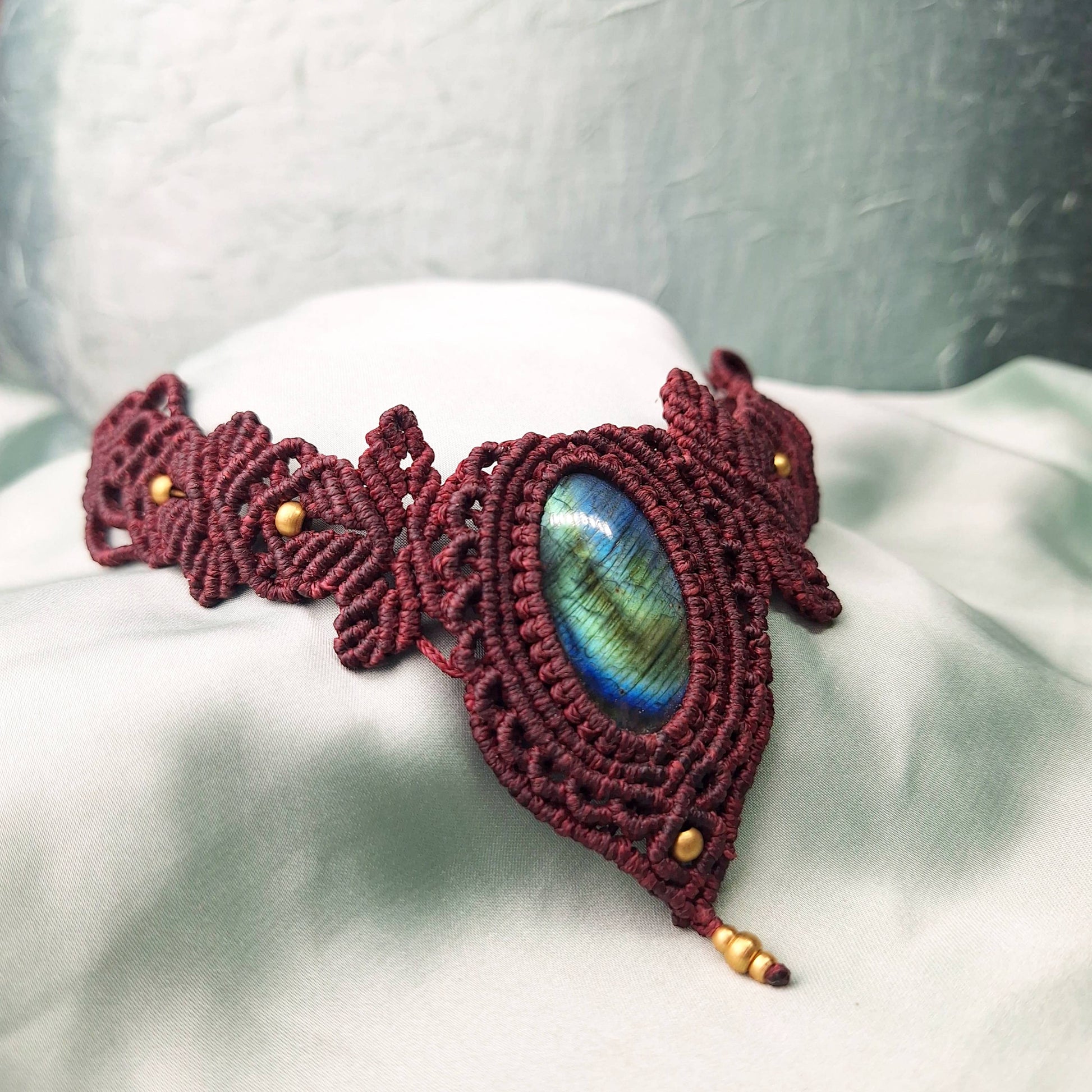 Makramee Kette mit Labradorit/ Boho Hippie Schmuck