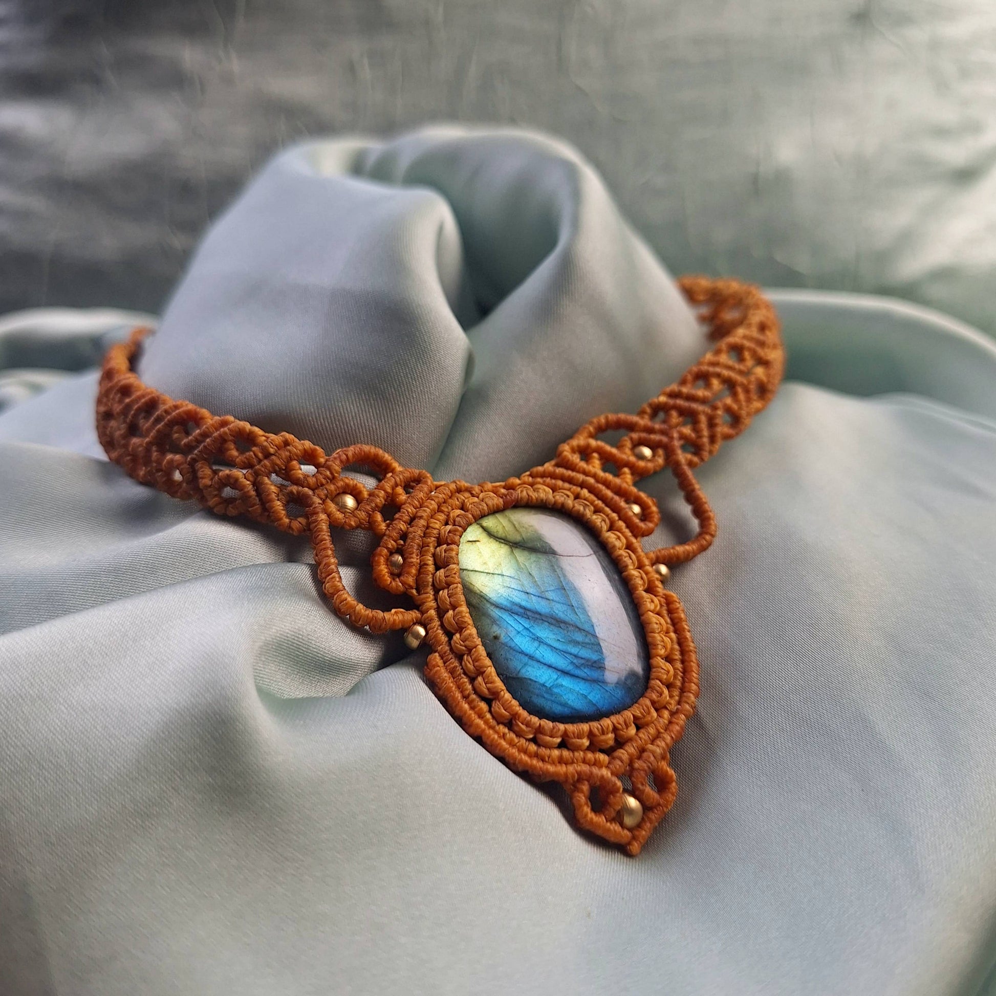 Makramee Kette mit Labradorit/ Boho Hippie Schmuck