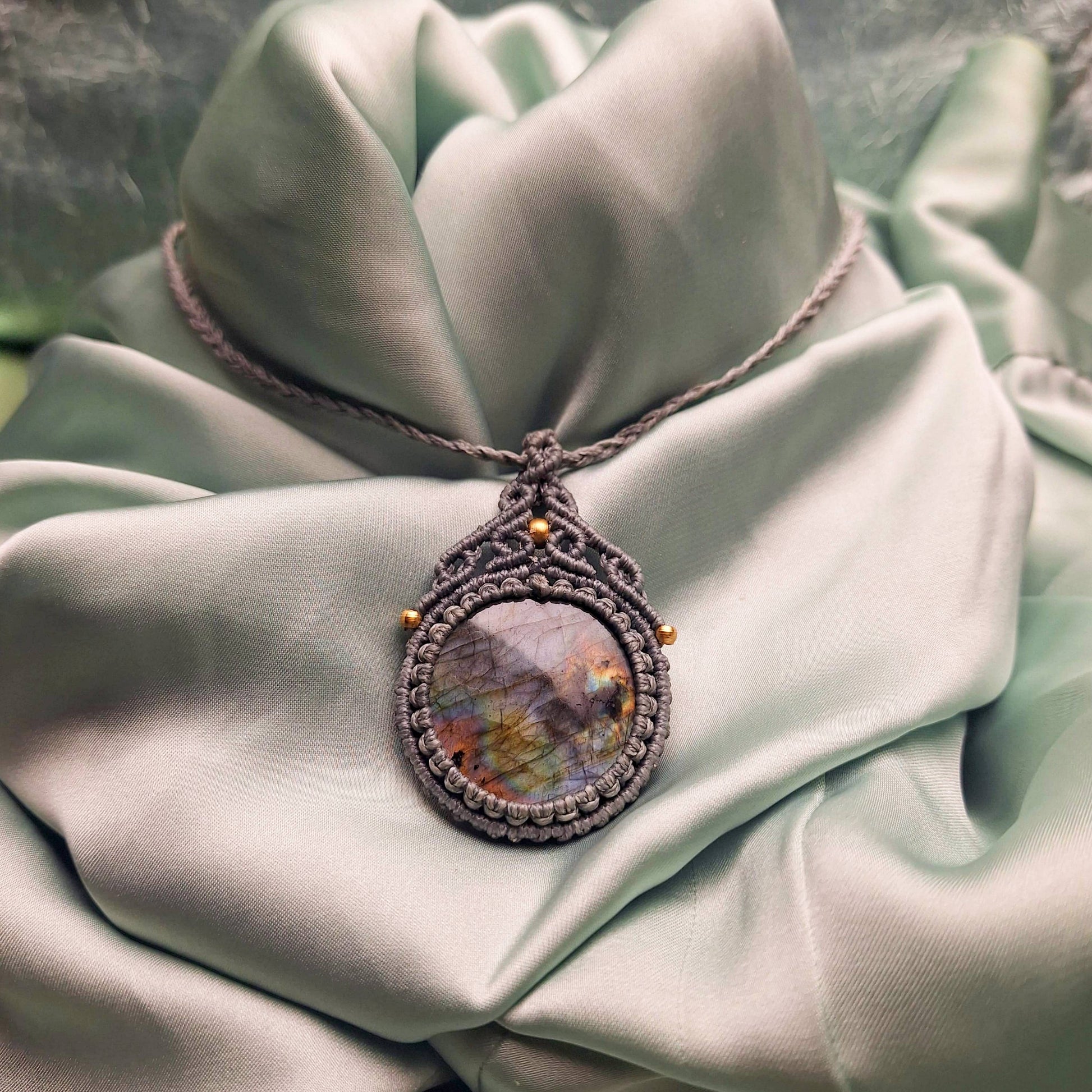 Makramee Kette mit Labradorit/ Boho Hippie Schmuck